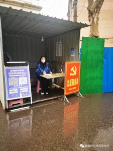 我所陶然亭、章帆律师积极报名参加志愿者服务工作,不畏寒冷,不惧风雨。3月20日,我所陶然亭律师根据安排在幸福社区义安苑卡口值班,冒着风雨控制人员流动,避免人员聚集;章帆律师一早就根据安排来到友好社区长江西村45栋防疫卡点,协助办理居民进出小区通行证,体温检测等防疫工作。